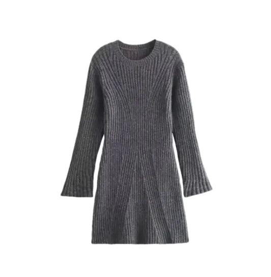 Fashion Solid Ribbed Knitted Dress Fall And Winter Slim-fit Stand-up Collar A-line Dresses Women's Clothing